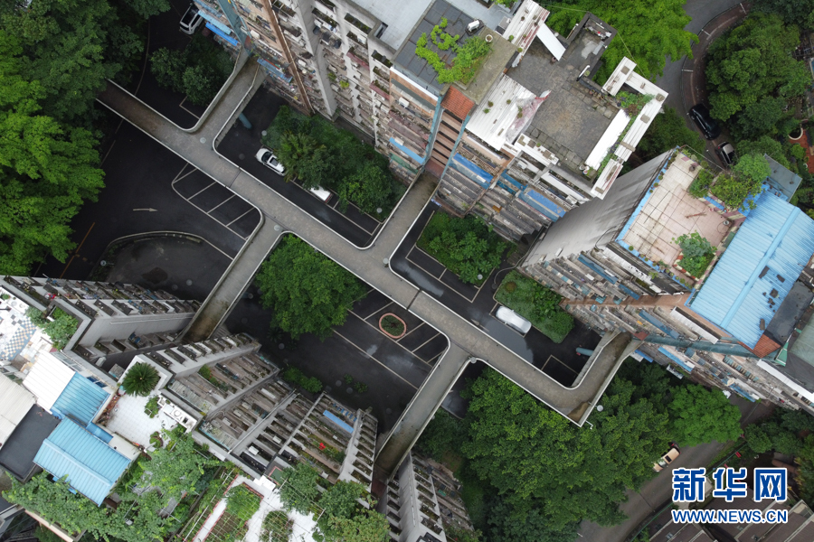 天橋在空中穿行,可方便居民出入。新華網 耿駿宇 攝