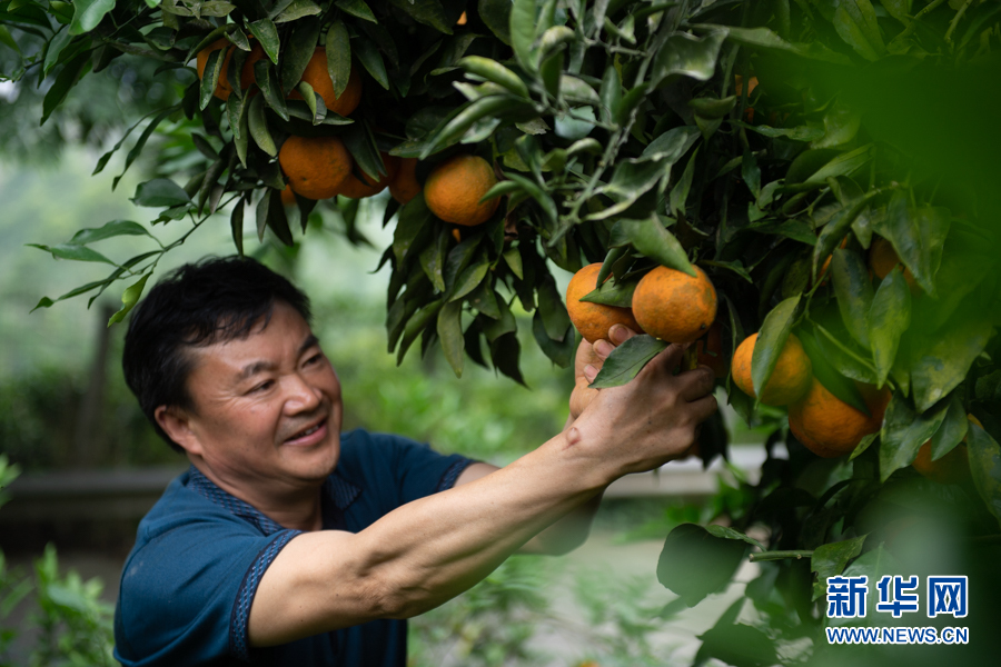 王茂雨在家庭農場內采摘鳳冠橘。新華網 耿駿宇 攝