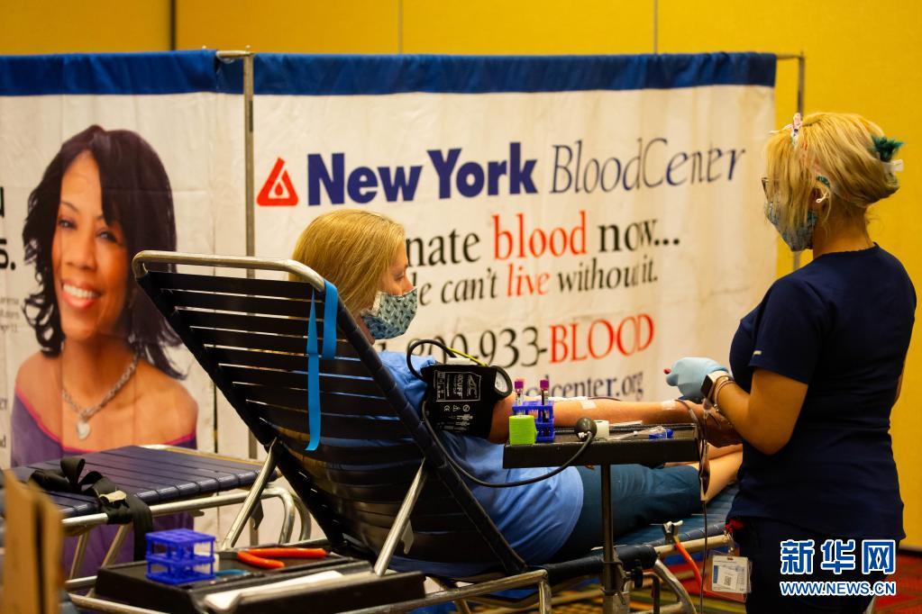 6月14日,在美國紐約州長島地區的尤寧代爾,獻血志愿者在美國紐約血液中心舉行的獻血活動上獻血。