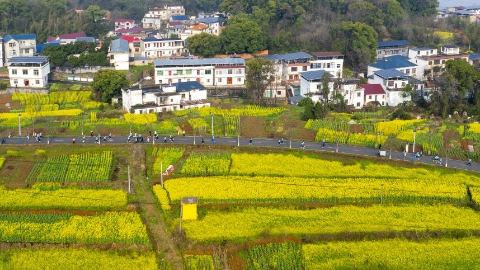 "(魏东升 摄)3月16日,九江瑞昌第五届乡村花海半程马拉松在当地武蛟乡举行。"