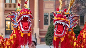 2月9日,在孔子博物馆举行的山东文物精品展上,参观者在观看五莲县博物馆收藏的龙山文化玉璇玑。