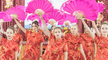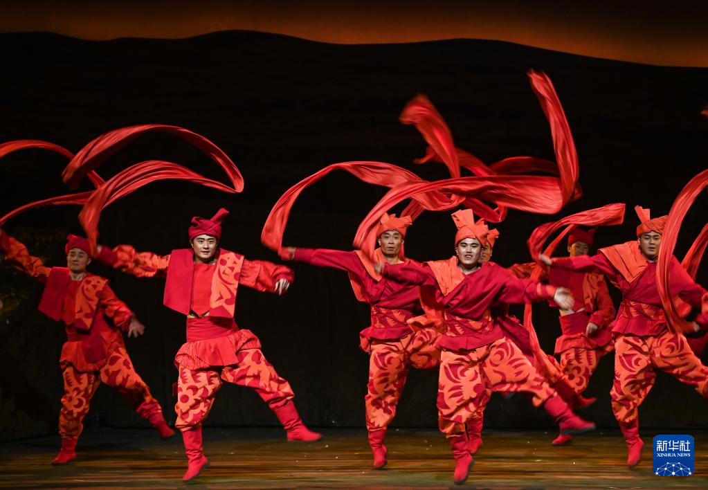2月16日在首届中国非物质文化遗产保护年会展演活动上拍摄的陕北秧歌剧《米脂婆姨绥德汉》演出现场。