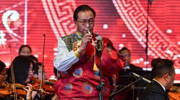 2月21日,在天津市水上公园,民间艺人表演汉沽飞镲。