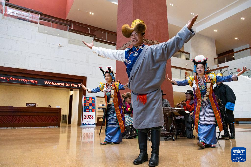 2月22日,在西藏博物馆,“堆谐”舞蹈演员向观众谢幕。
