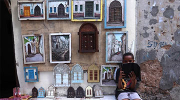 3月4日,建筑工人在南宁市展示自己制作的水拓画。