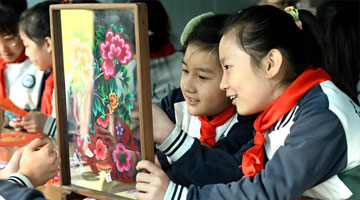 3月4日,建筑工人在南宁市学习水拓画技艺。