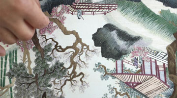 3月25日,一位游客带着孩子参观清华园车站旧址内的一处浮雕。