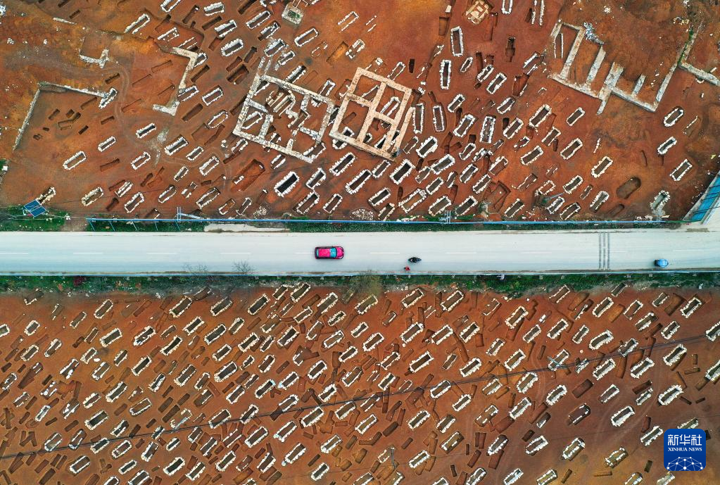 3月30日拍摄的贵州贵安新区大松山墓群挖掘现场(无人机照片)。