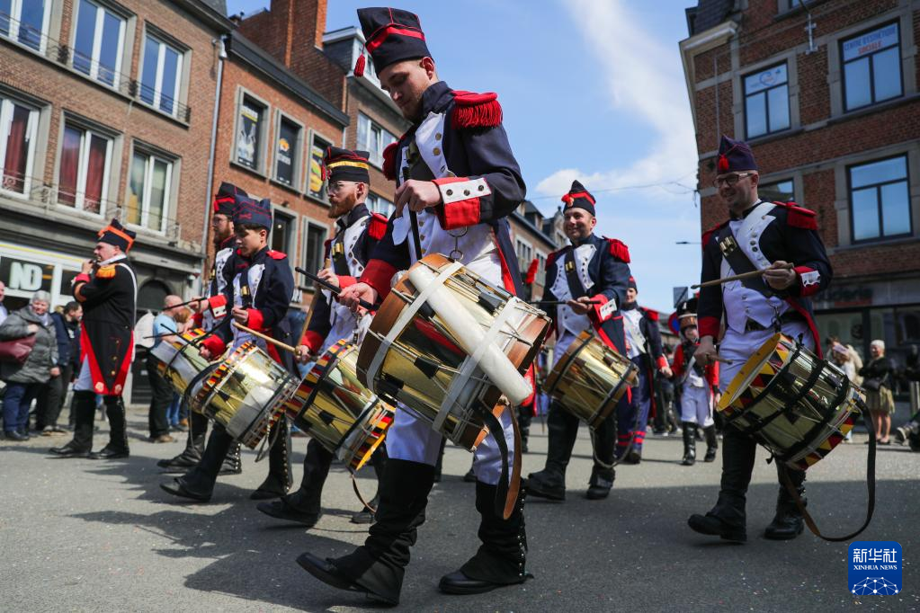 4月15日,演员在比利时那慕尔市传统民俗日活动上表演。