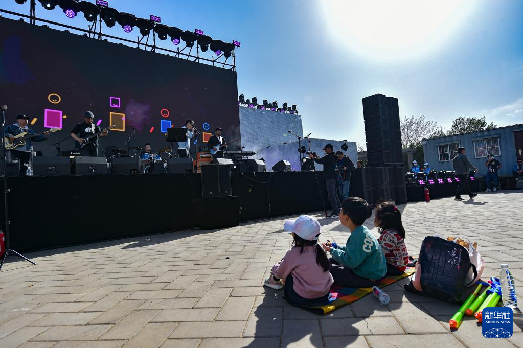 4月15日,游客在“2023下苑艺术生活季”活动现场观看乐队演出。