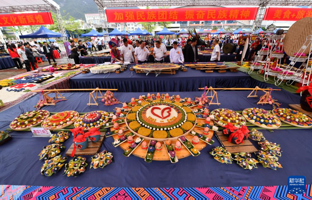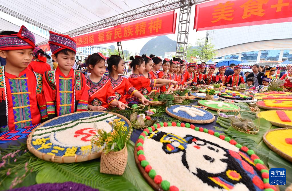 当日,广西河池市大化瑶族自治县举办“美味三月三”美食大赛,当地各族群众以糯米、七百弄鸡、山羊、河鱼等当地特色食材制作的数百道美食参加评比。