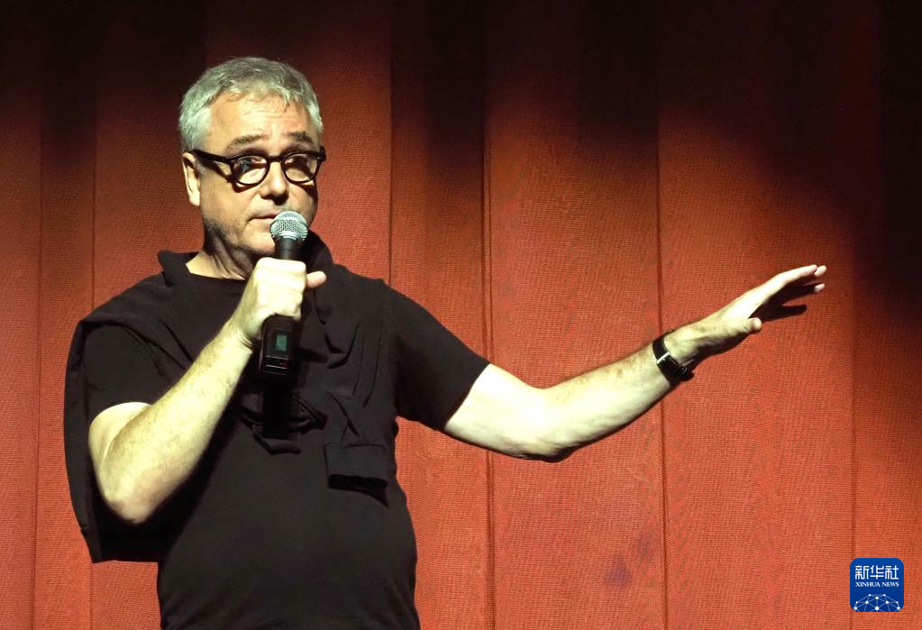 4月19日,音乐剧《剧院魅影》中文版执行导演雷纳·弗瑞德在现场介绍技术装台和演员舞台合成工作进程。