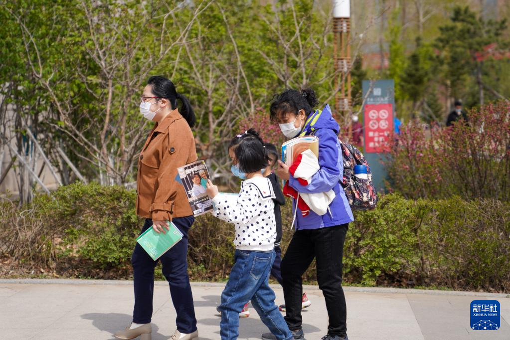 4月22日,一名小朋友在吉林省图书馆前的“换书大集”挑选图书。
