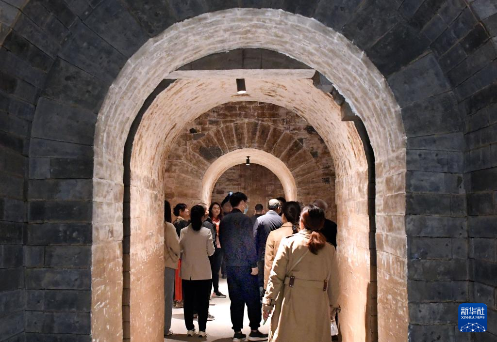 4月27日,参观者在曹操高陵遗址博物馆内参观。