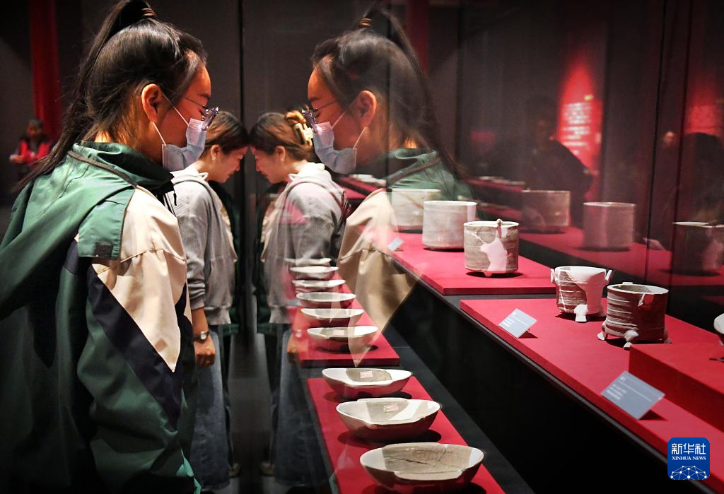 4月27日,参观者在曹操高陵遗址博物馆内观看展品。