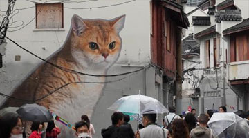 5月6日,江苏省扬州市江都区邵伯镇的邵伯龙舞队员与游客互动。