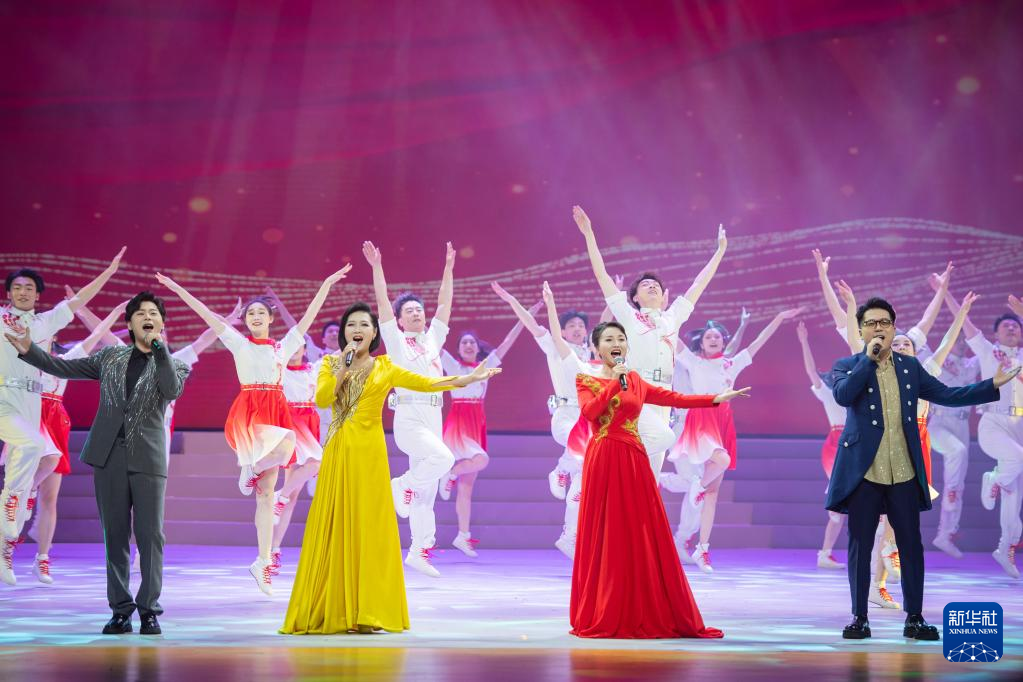5月10日,演员在舞台上表演节目《太阳晒在山坡坡》。