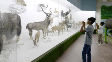 5月18日,游客在西夏博物馆欣赏展出的西夏文物。
