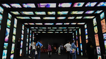 5月18日,观众在福州市三坊七巷历史文化街区参观拍摄传统漆器工艺品的沉浸式实景展示。