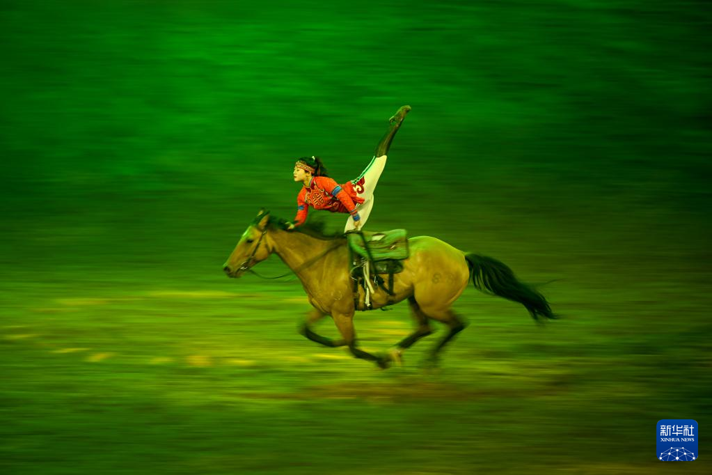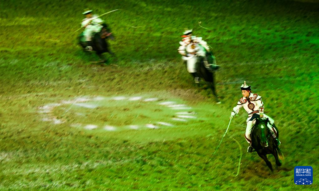 当日,由内蒙古民族艺术剧院出品的2023年大型马舞剧《千古马颂》在呼和浩特上演。该剧以马术表演为主,综合运用了舞蹈、器乐、杂技等艺术元素,融合了现代高科技舞台技术,以全新艺术形式生动演绎了人与马相遇、相识、相伴、不离不弃、生死与共的情感历程,体现了人、马与自然和谐共存的精神。