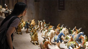 6月9日,在文博会“文旅消费馆·一带一路国际馆”陕西展台,观众浏览选购特色商品。