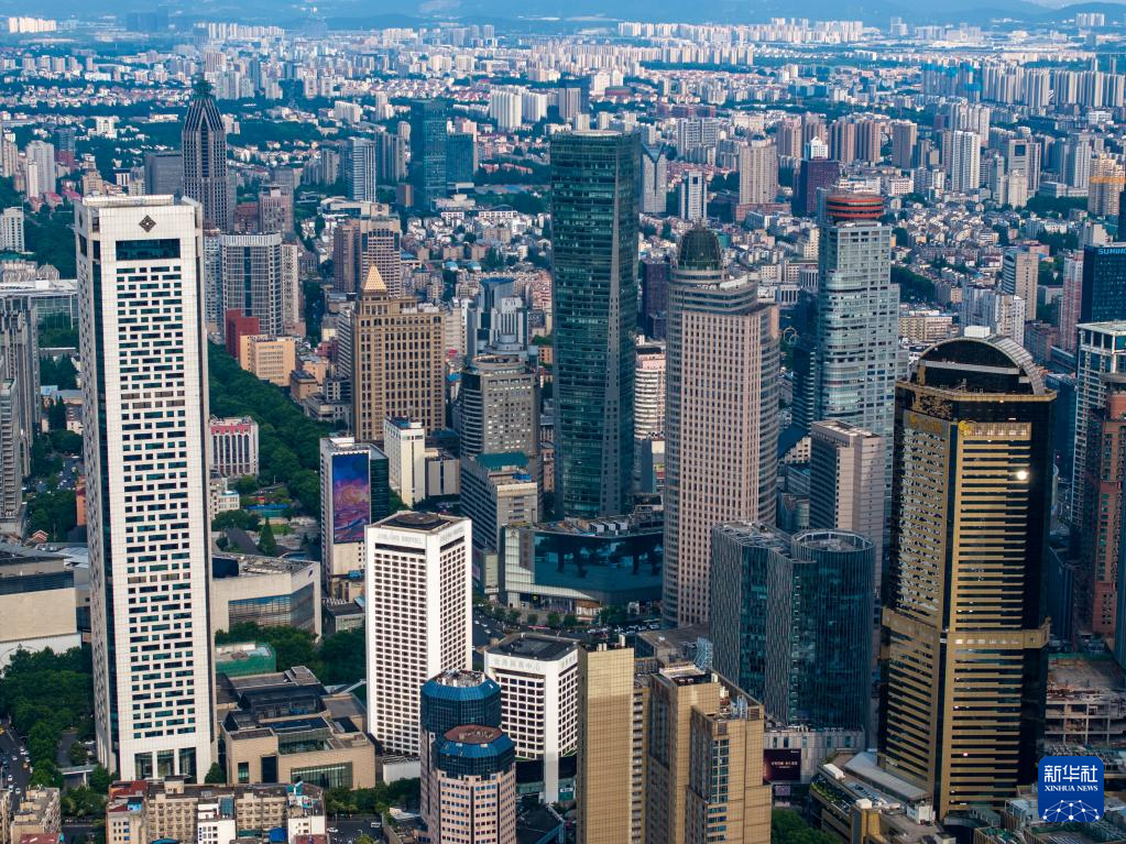 江苏南京新街口夜景(6月12日摄,无人机照片)。