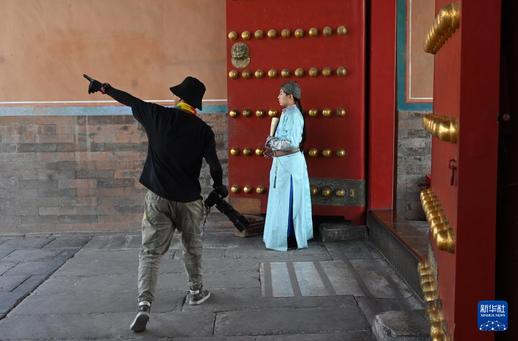 6月14日,一名小朋友在故宫内化妆,准备拍摄写真。