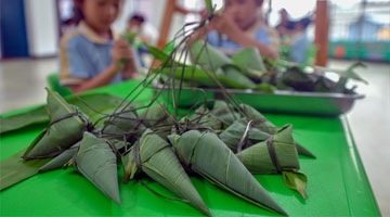 6月20日,竹编艺人陈红萍在展览现场介绍安溪的竹编工艺品。