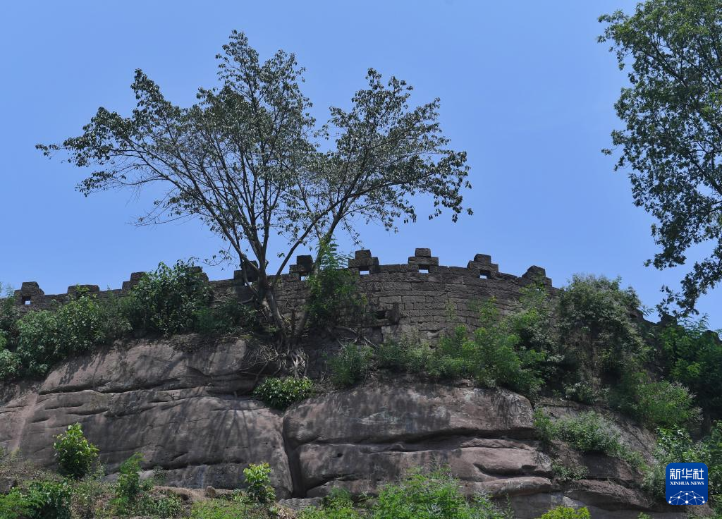这是6月27日拍摄的神臂城东门。东门是宋元两军争夺的焦点,东门城楼已毁,现存石砌双拱门硐保存完好,与两侧城墙连成一体。
