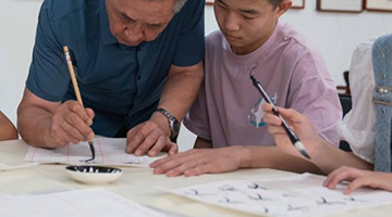 成果展上展出的山东省文物考古研究院藏大汶口文化嵌绿松石象牙雕筒(7月12日摄)。