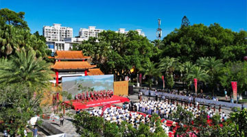 7月13日,演员在舞台上表演《五星出东方》。