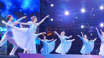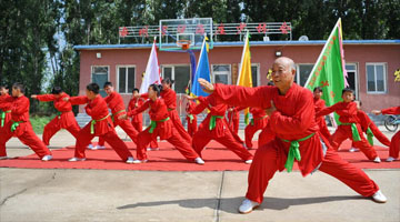 7月20日,在河北省沧州市吴桥县吴桥杂技大世界景区,杂技演员为吴桥县新兴路小学学生展示传统杂技项目。