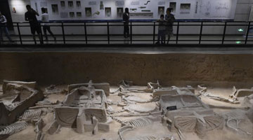 7月23日,小朋友在贵州剑河仰阿莎文化节上参加苗族水鼓舞活动。