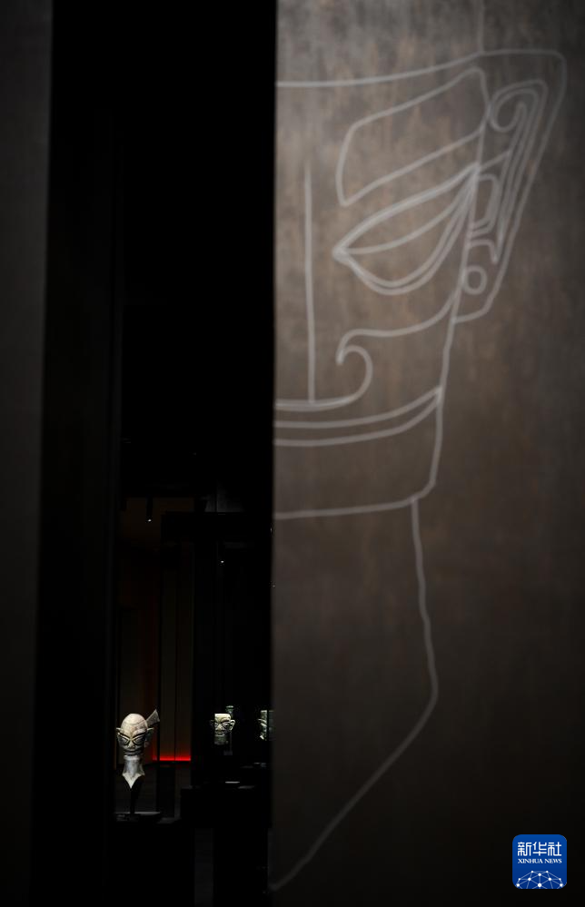 7月26日在三星堆博物馆新馆拍摄的青铜纵目面具。