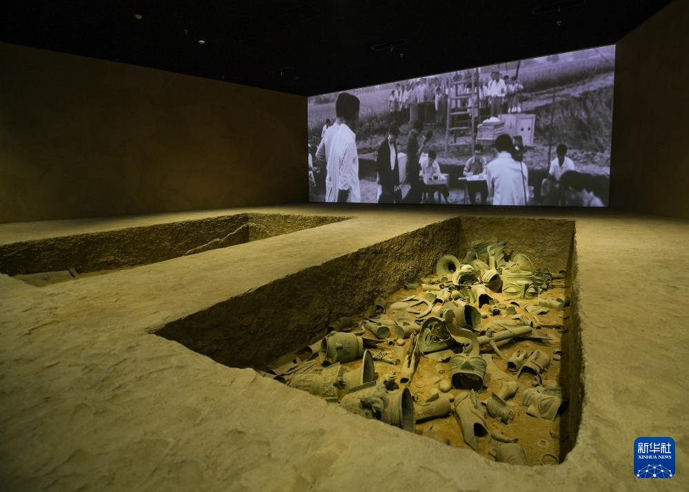 这是7月17日在三星堆博物馆新馆拍摄的1986年考古发掘模拟现场。