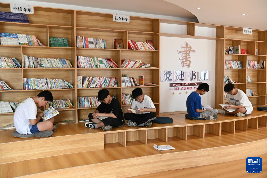 7月31日,在河南省沁阳市西万镇校尉营村党建书屋,几名学生在阅读。