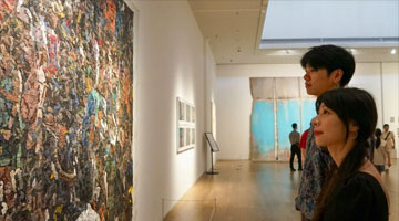 在新疆美术馆一幅展现农民丰收画面的投影动图前,17岁的俄罗斯舞蹈演员索菲娅·叶夫列缅科和同伴比划着学起了动图中的舞姿,有模有样。“新疆对各民族文化的保护和传承做得很好,而且利用了现代科技手段,令人印象深刻。”她说。