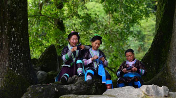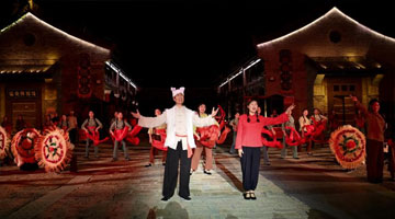 9月5日,在服贸会首钢园区文旅服务专题展区,观众在全景式动画场景中拍照留念。