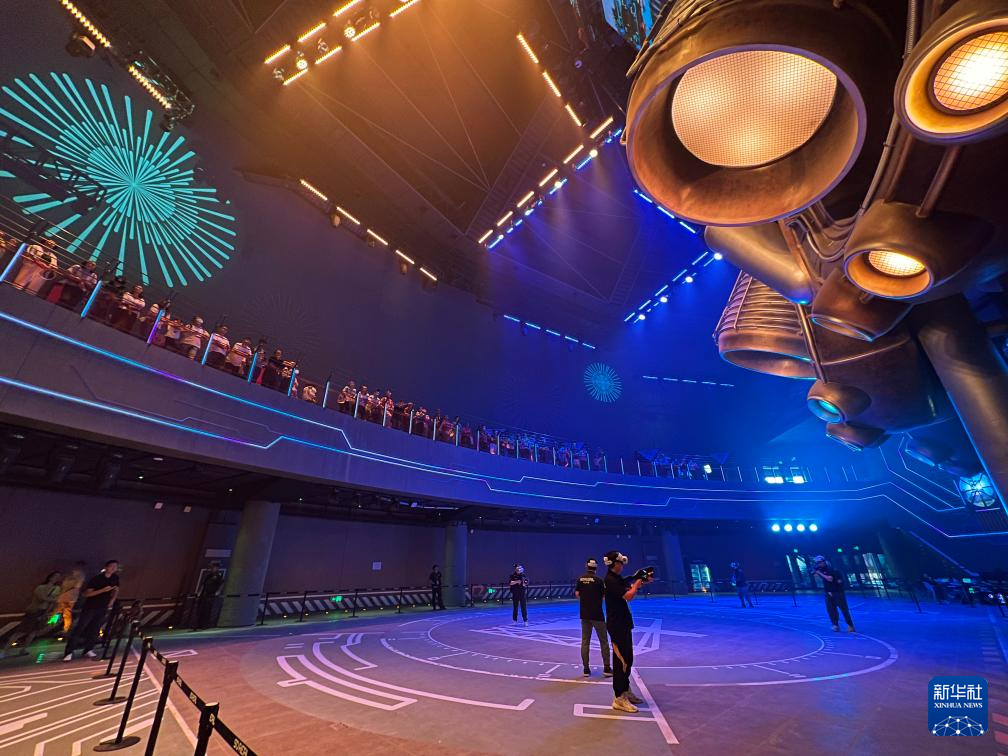 9月5日,在服贸会首钢园区首钢一高炉SoReal元宇宙乐园内,游戏玩家向观众展示VR竞技游戏。