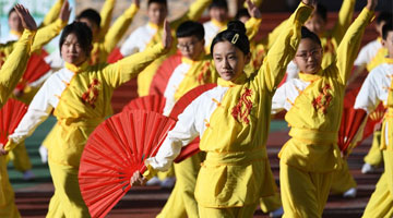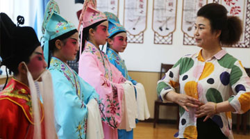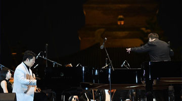 9月14日,观众参观陕西西安少陵原十六国大墓出土的骑马吹角俑和骑马击鼓俑。