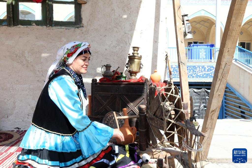 10月10日,在伊朗首都德黑兰,一名女子展示纺织技艺。