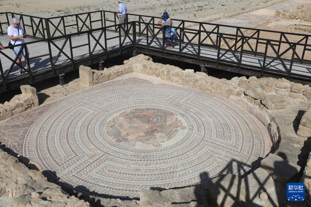 这是11月8日在塞浦路斯帕福斯考古公园内拍摄的马赛克地板。