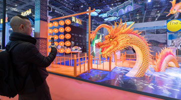 11月16日,参观者在豫园展位拍摄以豫园灯会为主题元素的空间场景。