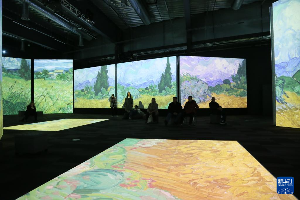 11月17日,在挪威维肯郡的利勒斯特伦,观众观看梵高光影艺术展。