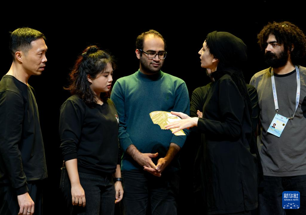 在福建泉州晋江市掌中木偶艺术保护传承中心,法希玛·巴罗奇与晋江市掌中木偶艺术保护传承中心演出队队长、市级非遗传承人陈代宫一见如故,两名中外艺术家台上台下交流互鉴,相互学习表演技艺。