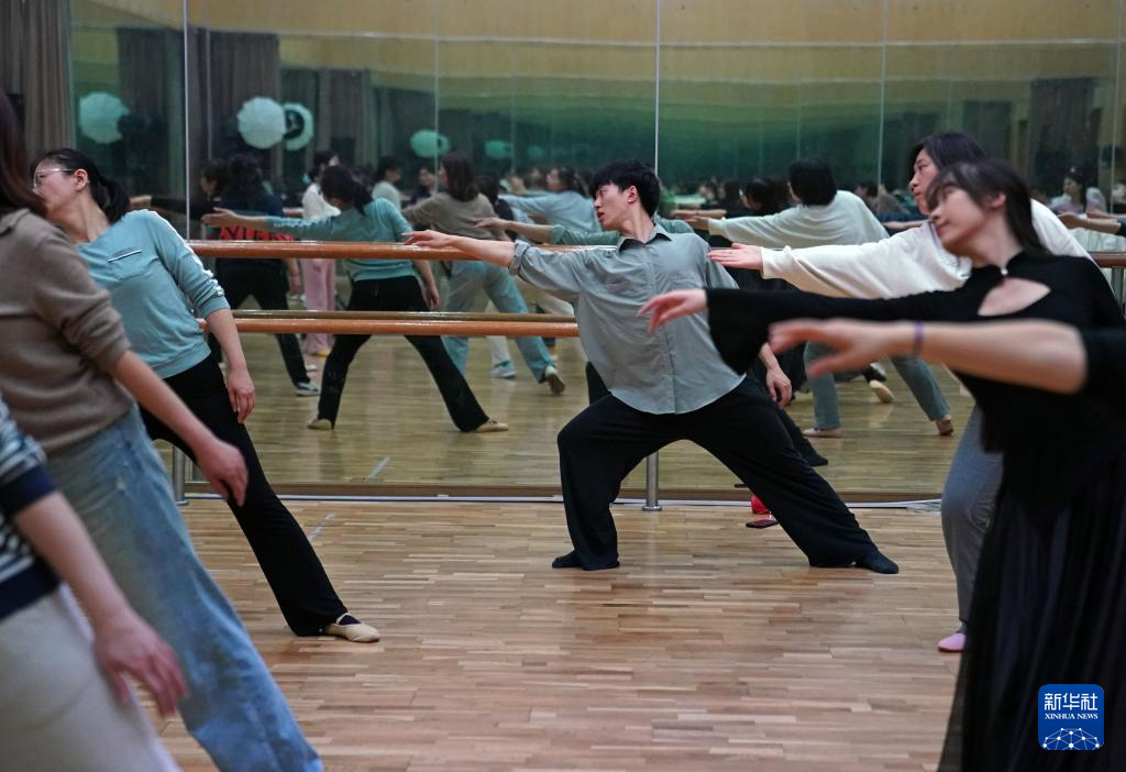 4月8日晚,在上海市群众艺术馆,舞蹈课程的老师在给夜校学员们上课。