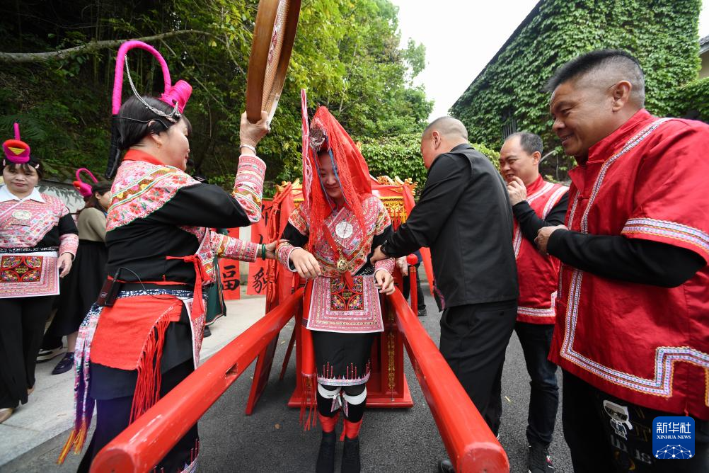 4月11日,首届“三月三”连马民族文化节上进行畲族传统婚嫁民俗表演。