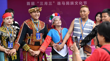 当日,云南省西双版纳傣族自治州举行泼水狂欢活动,人们欢聚在景洪市泼水广场,用相互泼水的方式互送祝福,庆祝泼水节。