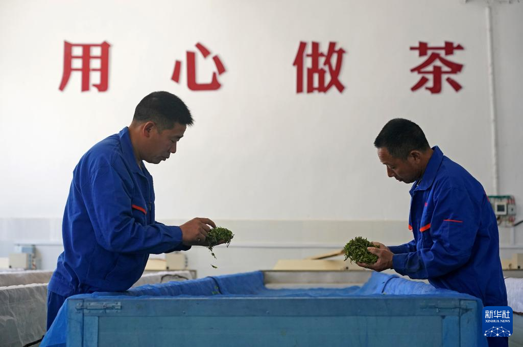 江西省修水县漫江乡的宁红茶制茶基地,俞旦华将茶叶进行机械烘干(3月29日摄)。