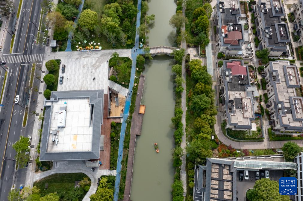 扬州古邗沟一景(无人机照片,4月24日摄)。